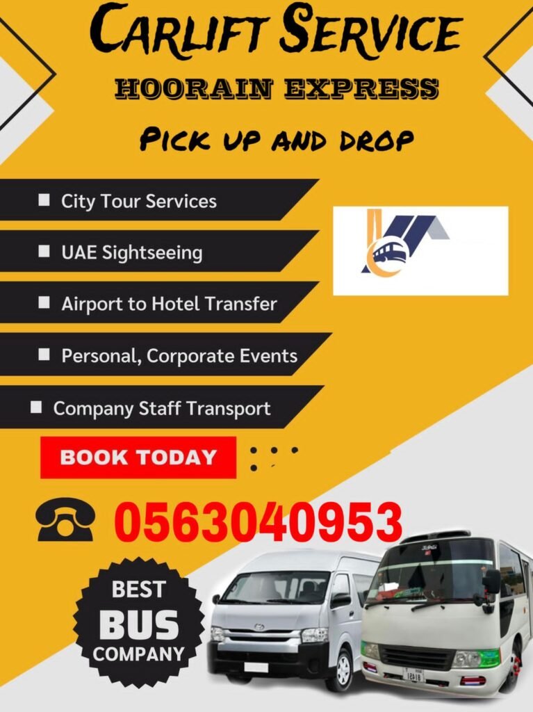 Offers convenient, safe, and affordable daily transport across Dubai and nearby emirates. Whether you’re commuting to work or traveling between cities, our professional drivers ensure a smooth and timely ride. Enjoy air-conditioned vehicles, flexible schedules, and reliable service tailored to your needs. Choose us for stress-free daily travel.
